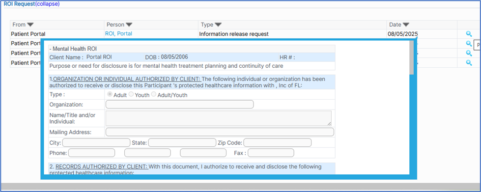 - Shared ROI forms are available to staff at: Patients > Portal Forms