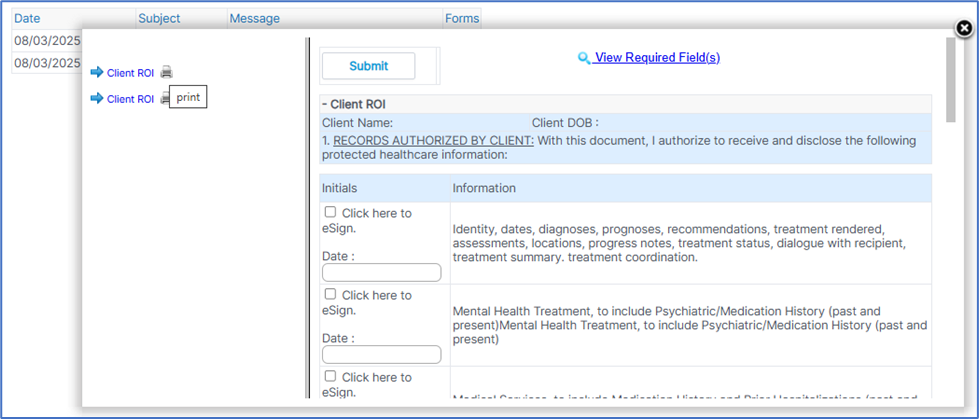 - 935pxIf staff resend an ROI form, clients will see a message under the Portal > ROI Forms tab.